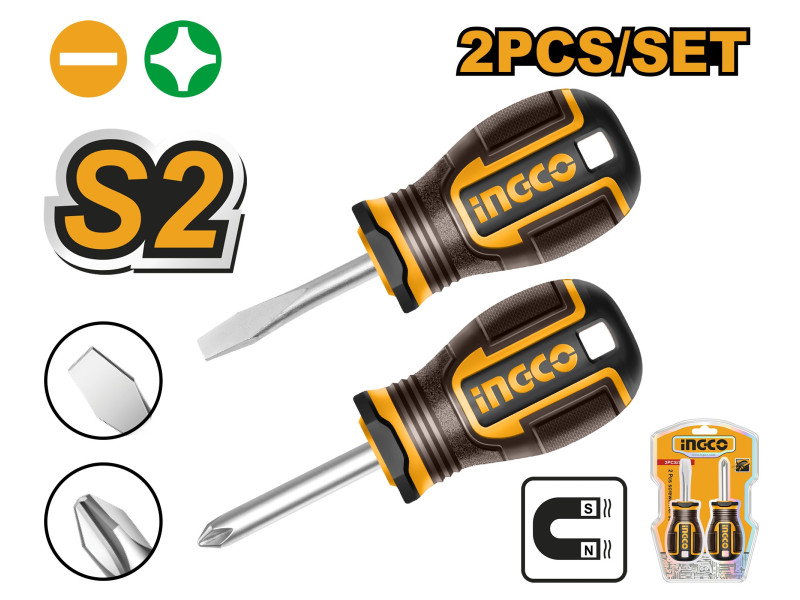 Csavarok megfeszítésére és lazítására1. S2 anyag, a késrúd elektromos ütéses gyártási folyamatot alkalmaz, nagy nyomatékkal, magas keménységgel és hosszú élettartammal2. Ergonomikus fogantyú, kényelmes fogás3. Két színű fogantyú, szép megjelenés4. Több darabos készlet konfiguráció, különböző helyszínekhez és funkciókhoz megfelelőMéretek: 1 db SL6.5 x 6 x 38 mm, 1 db PH2 x 6 x 38 mmMarkolat: 3 színű TPR markolatErős mágnesselErgonomikus Szállítási terjedelem: 2 db marokcsavarhúzó S2, Bliszterben