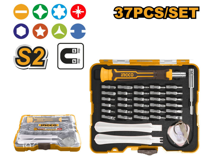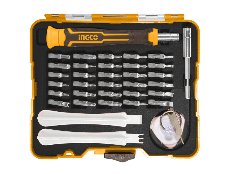 Egyedi markolatBithegytartó mérete: 4 x 60 mm4 x 28 mm bitek: SL1.5, SL2, SL2.5, SL3, SL3.5, Sl4, PH000, PH00, PH0, Ph1, T4, T5, T6, T7, T8, T9, T10, T15, T20, H0.9, H1.3, H1.5, H2, H2.5, H3, H4, Y2, U2.6, Five Star 0.8, Five Star 1.2, Five Star 0.8, Five Star 1.2, Alkalmas az iPhone és iPad termékekhezErős mágnessel Szállítási terjedelem: 1 db csavarhúzó, 1 db bithegytartó, 30 db bithegy CrV, Kofferben