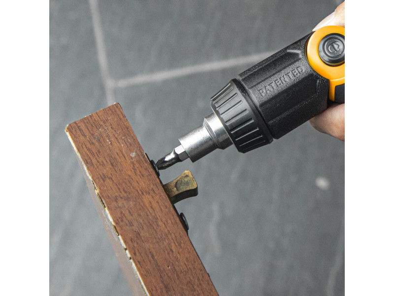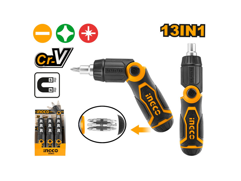 Otthoni javítások Autó javításJellemzők: A fogantyú hajlítható.Eladási pontok:1. A fogantyú kicsi és hajlítható, alkalmas a működésre különböző szűk helyszíneken.2. Racsnis kialakítás, kényelmes és munkát megkönnyítő.3. A 12 darab csavarhúzófej változatos, a fej mágneses, és egy készlet alkalmas különböző típusú csavarokhoz.4. A faroktároló kialakítás kicsi és hordozható.Egyedi markolatHajlítható markolatCsavarhúzó bitek mérete: 6.35 x 25 mmMéretek: SL4, SL5, SL6, Sl7, PH0, PH1, PH2, Ph3, Pz0, PZ1, PZ2, PZ3Anyaga: CrV Szállítási terjedelem: 1 db racsnis csavarhúzó, 12 db bithegy, Kináló dobozban