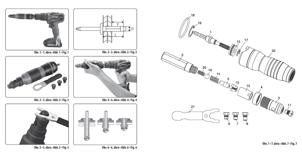 Fúrógépbe vagy akkus csavarbehajtóba befogható. TILOS ütvecsavarozóval vagy ütvefúró funkció bekapcsolása közben használni! Olyan elektromos vagy akkus fúrógépekkel használható, amelyek minimális nyomatéka 2 Nm és 9 Nm között van, a használt szegecs méretétől és anyagától függően. A meghajtó fúró-, illetve csavarozó gép NEM része a csomagnak, azt külön kell megvásárolni!