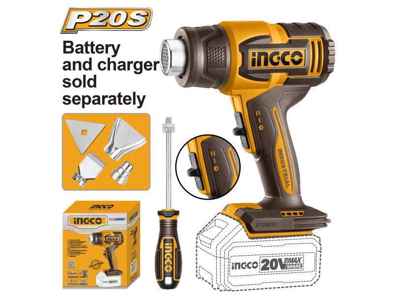Lítium akkus hőlégfúvó: festék eltávolítás, jégtelenítés, ragasztó megolvasztás, matricaleszedés, zsugorfóliázás, műanyag csövek és lapok hajlítása stb.Hosszú élettartamú fűtőszálFejjel lefelé is használhatóTöbbféle tartozék különböző feladatokraKétfokozatú légáram: max. 550?°C, max. 200?l/percErgonomikus markolat és új kialakítású ház4.0Ah akkumulátorral a hosszabb üzemidőért