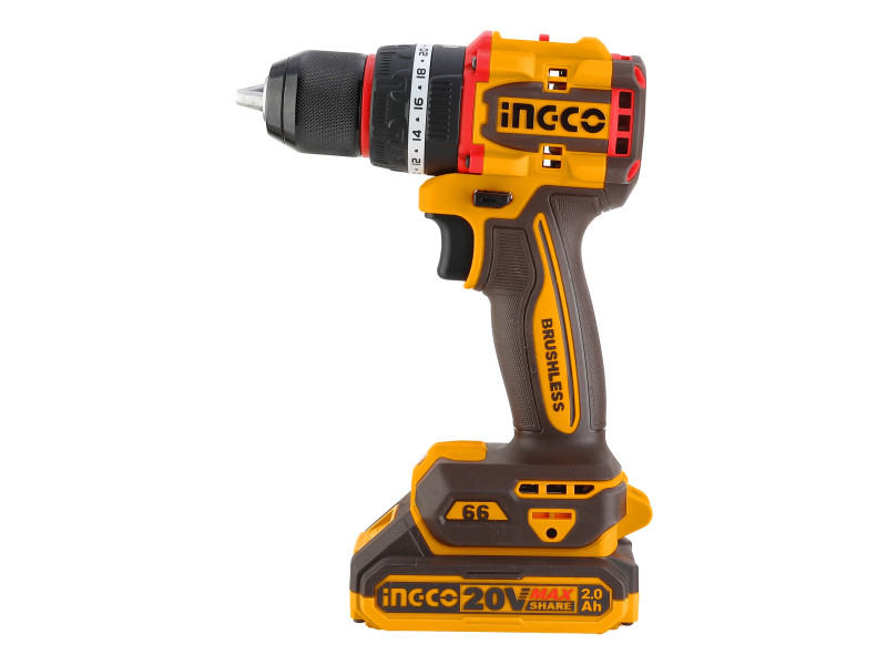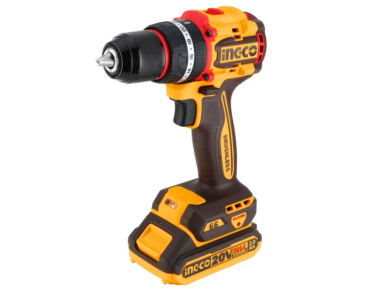 Az INGCO 20 V-os akkus ütvefúró-csavarozó egy kompakt, erőteljes és sokoldalú szerszám, ideális fa, fém, műanyag és falazat fúrására, valamint csavarozási munkákhoz. A szénkefe nélküli motor nemcsak hosszabb élettartamot biztosít, hanem nagyobb hatékonyságot és kevesebb karbantartást is igényel. A 66 Nm maximális nyomaték és a mechanikus, 2 sebességes váltó lehetővé teszi a precíz és erőteljes munkavégzést.Szénkefe nélküli motor nagyobb teljesítmény és hosszabb élettartamKétsebességes hajtómű alacsonyabb fordulatszám csavarozáshoz, magasabb fordulatszám fúráshozMax. 66 Nm nyomaték erős meghajtás a nehezebb munkákhoz is13 mm-es fém gyorstokmány stabil és gyors szerszámcsereÜtvefúró funkció hatékony fúrás falazatba és betonbaLED munkavilágítás sötét helyeken is pontos munkavégzésLED töltöttségjelző akkumulátor állapotának gyors ellenőrzéseKét darab 2,0 Ah akkumulátor és töltő folyamatos munkavégzést biztosítErgonomikus kialakítás kényelmes fogás és könnyű kezelhetőség Technikai adatokFeszültség (V)20Üresjárati fordulatszám0 - 500 / 0 - 2 000 f/pMax. ütés tartomány (ütés/perc)30000Max. nyomaték (Nm)66Tokmány méret (mm)13Nyomaték beállítás22 + 1 + 1Tokmány típusaFém tokmánySebességváltó típusaMechanikus 2 sebességes váltóTokmány rögzítésGyorstokmányBeépített LED lámpaIgenLED akkutöltöttség kijelzőIgenAkkumulátor típusa (Ah)2 x 2,0TöltőIgen, tartozék