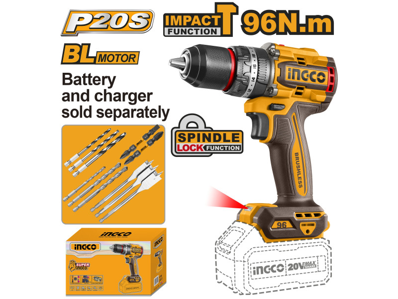 Fúrás, csavarozás, betonfúrásSzénkefe nélküli motor, erős teljesítmény, max. 96 Nm nyomaték13 mm-es teljesen fémből készült tokmány zárral, stabilabb befogás22+1+1 fokozatú állítás ütvefúró funkcióval, különböző munkakörülményekhezTartozékdobozzal szállítva, sokoldalú felhasználásTeljesen alumínium hajtóműház