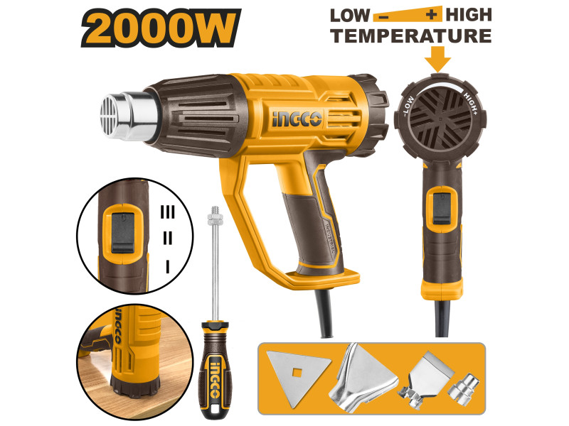 A hőlégfúvó használható járműápoláshoz, javításhoz, fóliázáshoz, színezéshez, festék- és lakkeltávolításhoz, fagyott csövek kiolvasztásához, csempék és gitt meglazításához, ragasztók újraolvasztásához, matricák eltávolításához, viaszoláshoz és viasz eltávolításhoz, zsugorcsövek és zsugorfólia melegítéséhez, műanyag csövek és lemezek hajlításához stb.Hosszú élettartamú fűtőmagFejjel lefelé is használhatóKülönféle tartozékok különböző munkakörülményekhezHáromfokozatú légmennyiség- és hőmérséklet-szabályozás, max. 55?°C és 450?L/percÚj fejlesztésű ház és markolat a kényelmes fogásértForgatható hátsó burkolat a hőfok állításához**