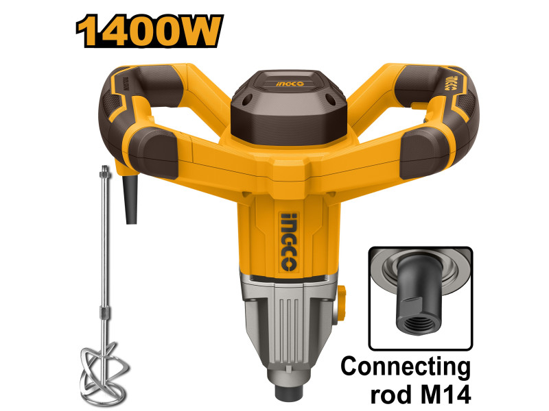 Az MX214008 Ingco keverőgép egy erőteljes elektromos szerszám, amely különféle építőanyagok, mint például malter, vakolat, ragasztók, oldószermentes festékek és lakkok keverésére lett tervezve. Az alábbi jellemzőkkel rendelkezik:Dupla fogantyú kialakítás: A stabilabb fogás érdekében dupla fogantyúval rendelkezik, amely biztonságosabb és kényelmesebb használatot biztosít, különösen hosszabb munkavégzés során.Menetes interfész: A menetes interfész kényelmes telepítést tesz lehetővé, miközben elkerüli a fúró leejtését, így gyorsan és egyszerűen használhatod.1400W-os nagy teljesítményű motor: A nagy teljesítményű motor folyamatos és erős kimenetet biztosít, így biztosítva a hatékony és gyors keverést még a sűrűbb anyagok esetén is.6 sebességfokozat: A szabályozható sebesség lehetőséget ad arra, hogy különböző felhasználási szcenáriókhoz igazítsd a gép Technikai adatokFeszültség (V)220 - 240Teljesítmény (W)1400Üresjárati fordulatszám (ford/perc)0 - 500 / 0 - 750SzerszámbefogásM14Alumínium fogaskerékházIgenBeépített lámpaIgenSzállítási terjedelem: 1 db keverőszár, 1 pár szénkefe