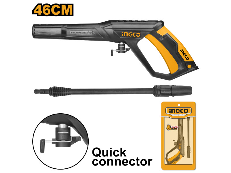 Magasnyomású mosóval használható szórópisztoly, mely dugattyús szivattyúval nagy nyomású vizet hoz létre tárgyak felületi tisztításáhozTartós nejlon anyagNagy méretű pisztolymarkolat a jobb fogásélményértTöbbféle vízáram-beállítás