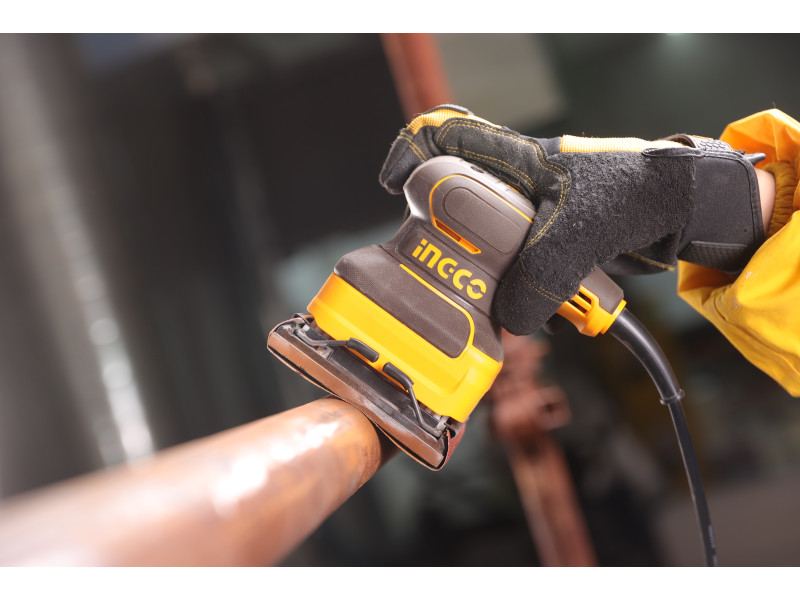 Ez a gépi szerszám alkalmas fa, műanyag, fém, tömítőanyag és lakkozott felületek száraz csiszolására.1. Porálló kapcsoló, meghosszabbítja a kapcsoló élettartamát2. Hatékony hőelvezetés, növeli a szolgáltatási élettartamot3. Gumi bevonatú fogantyú, csúszásmentes kialakítás4. Magas minőségű, importált vezetékcsipesz5. 240W erős teljesítmény, nagy sebesség, erős csiszolóképességet biztosítFeszültség: 220 - 240 V ~ 50 / 60 HzFelvett teljesítmény: 240 WÜresjárati fordulatszám: 14000 f/pCsiszolótalp mérete:: 110 mm x 100 mm Szállítási terjedelem: 5 db csiszolópapír (AKFS140102), 1 szett szénkefe, Kartondobozban