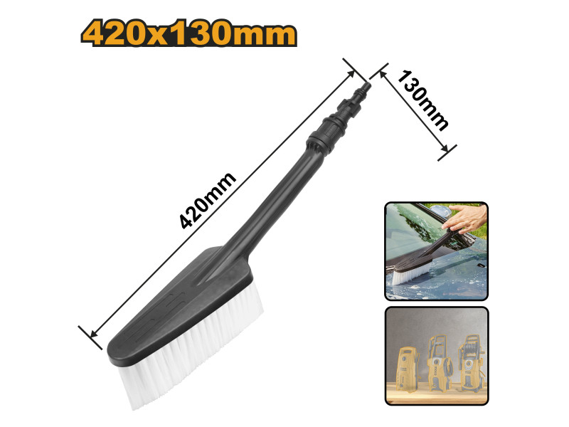 Magasnyomású tisztításhoz használható autómosáshoz, padló- és fürdőszobatisztításhozFekete nejlon nyél, fehér sörtékkelPolipropilén és PA66 anyag, kiváló szilárdságA sörtecsomók szakítószilárdsága ? 30N