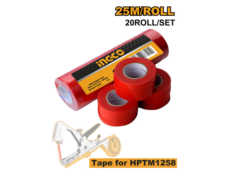 Szalag a HPTM1258 kézi kötözőgéphez20 tekercs / készletHossz: 25 m / tekercsSzélesség: 11 mmKönnyített, elasztikus, tapadásmentesNem okoz sérülést a növényeknek Szállítási terjedelem: 20 tekercs kötözőszalag, Címkézett műanyag csomagolás