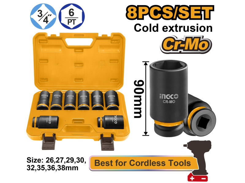 Bányászat, kohászat, hajógyártás, autójavítás és egyéb iparágakban, nehézgépek karbantartására, nagyméretű csavarok ki- és behajtására, pneumatikus ütvecsavarozóval is használhatóA dugókulcs króm-molibdén acélból kovácsolt, egy darabból formázott, magas hőmérsékleten edzett, nagy keménységű, erős, ütésálló, fekete foszfátbevonattal a korrózió és rozsda ellen hosszú élettartamMegerősített, vastagított hengerfal, hatszög íves kialakítással az erős reteszelésért, nem csúszik, többféle méretben kaphatóA négyszögletes csatlakozó gumigyűrűs rögzítőhoronnyal ellátott, pneumatikus és elektromos gépekkel is használható, megakadályozza a lecsúszást, növeli a hatékonyságotÜtésálló fújt műanyag hordtáskában, könnyen tárolható és szállítható