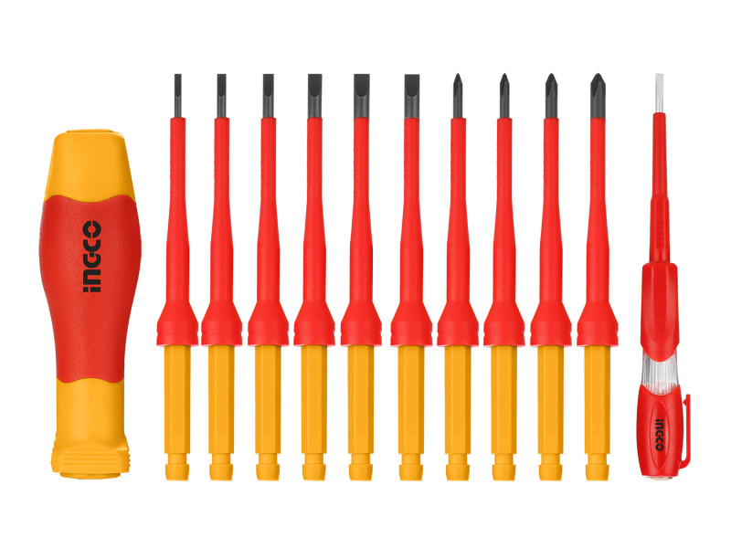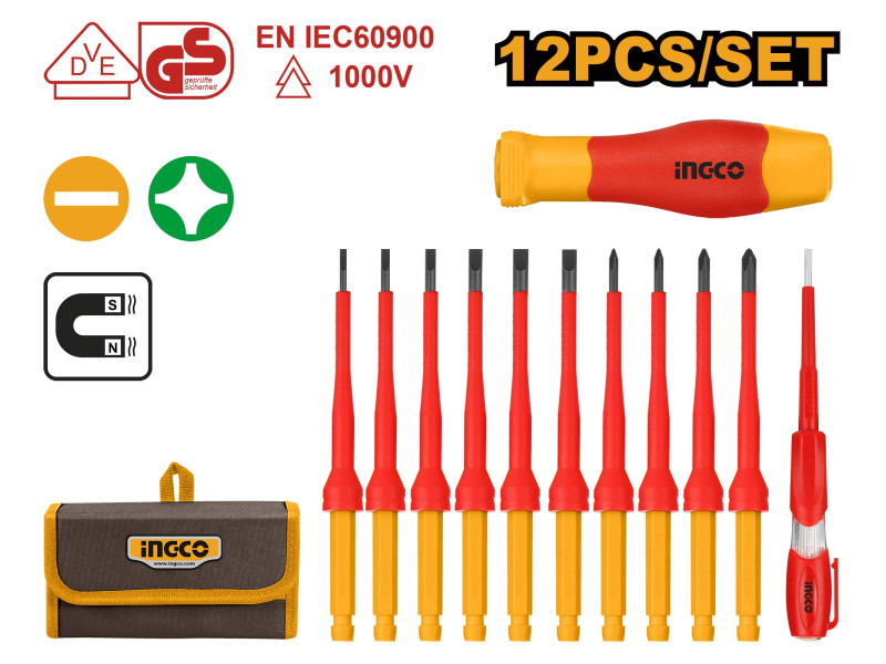 Autójavítás, villanyszerelés, gépjavítás"1. VDE, GS tanúsítvány, 1000V magasfeszültségű tanúsítvány, hatékonyan biztosítja a felhasználó biztonságát2. Cserélhető fejű VDE csavarhúzó nyél3. Az eszközrúd anyaga S2, az eszközrúd anyaga magas4. Szövetzsák csomagolás, könnyen hordozható"Tanúsítvány: 1000 V, VDE/GS minősítésAnyaga: S2 acél Szállítási terjedelem: 12 darabos cserélhető szigetelt csavarhúzó készlet: SL2.0 x 100 mm, SL2.5 x 100 mm, SL3.0 x 100 mm, SL3.5 x 100 mm, SL4.0 x 100 mm, SL5.5 x 100 mm, SL6.5 x 100 mm, PH0 x 100 mm, PH1 x 100 mm, PH2 x 100 mm, 1 db cserélhető markolat, 1 db 3.0 × 70 mm-es feszültségmérő, Vászontáska csomagolás