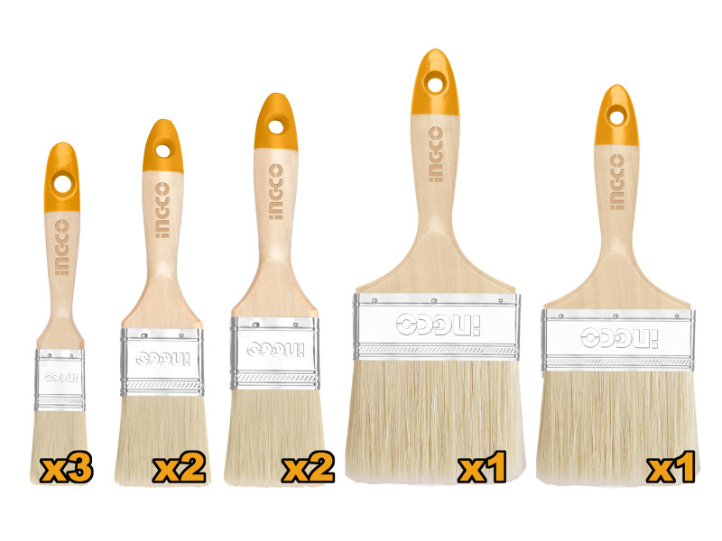 Festés"""1. Költséghatékány nyírfa nyélű festőecset készlet2. Speciális stílusú nyél3. Finom festési hatás"""Olaj bázisú festékekhezMéretek: 3 db 25 mm (1"), 2 db 38 mm (1.5"), 2 db 50 mm (2"), 1 db 75 mm (3"), 1 db 100 mm (4")Fa markolat Szállítási terjedelem: 9 db ecset, Bliszterben