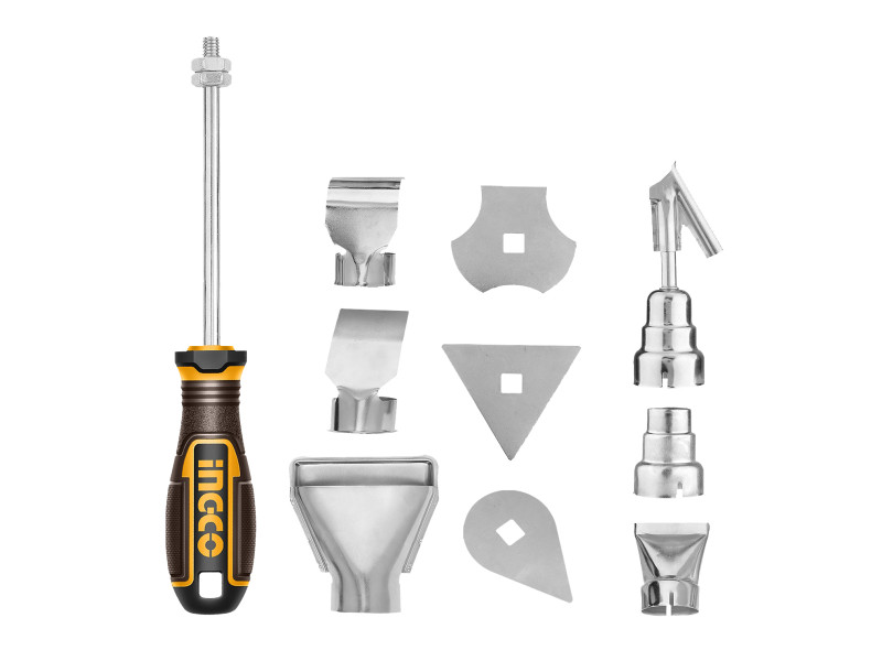 A hőlégfúvón használható fúvókák a különböző munkákhoz megfelelő fúvókát kell választani: körfúvóka, lapos fúvóka, széles fúvóka, hegesztő fúvóka, véső, kaparó.Teljes méretválaszték a különféle felhasználási igényekhez