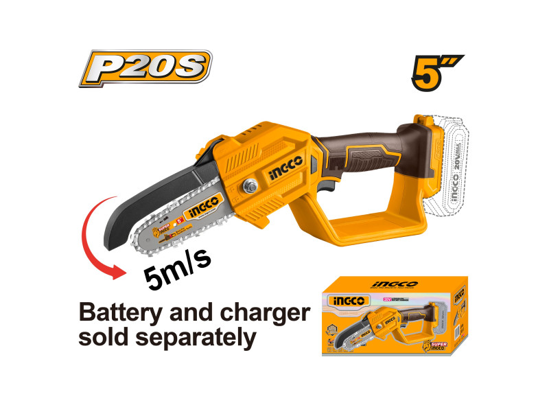 A CGSLI2058 Ingco akkus láncfűrész kizárólag fa és ágak vágására készült, amelyek átmérője megfelel a metszőfűrész vezetősínjének hosszának.