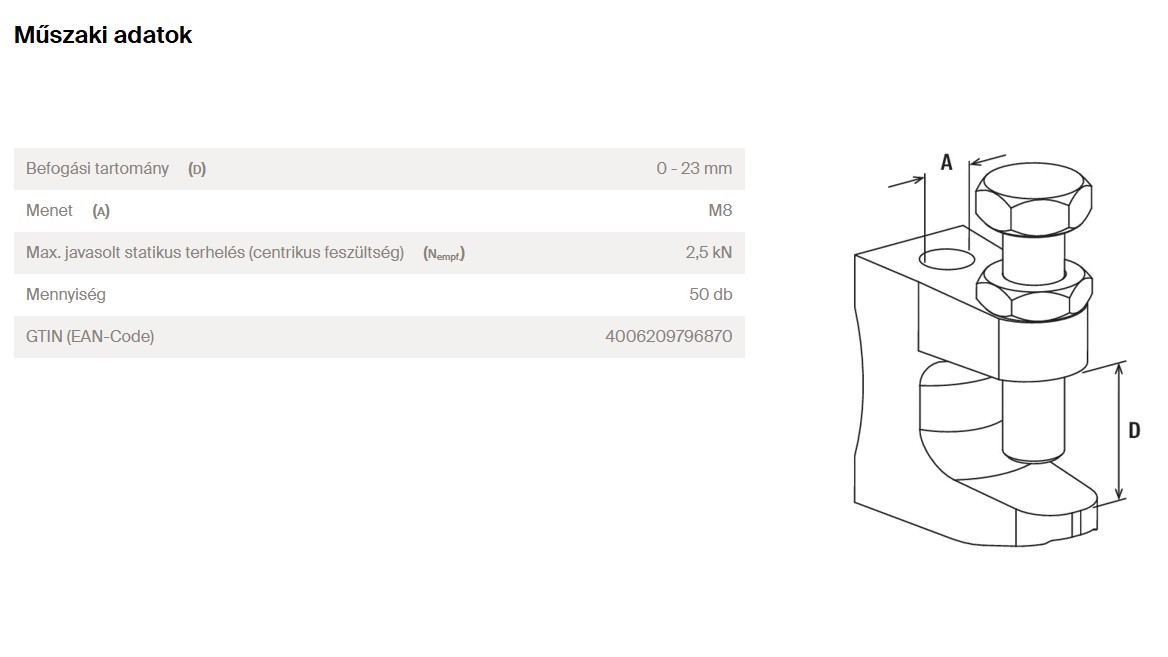 Max. javasolt statikus terhelés (centrikus feszültség) (Nempf.): 2,5 kN
