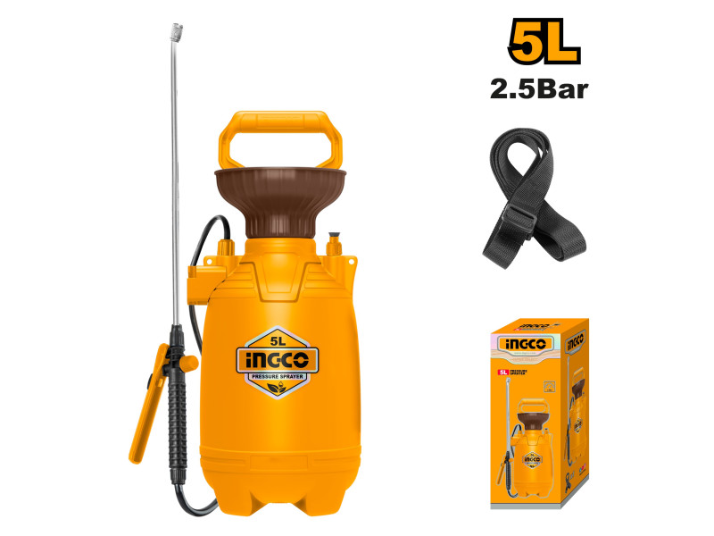 Otthoni öntözés1. A permetezési mód állítható, két móddal: közvetlen permetezés és ventilátoros permetezés.2. A kanna szája tál alakú kialakítású, ami megkönnyíti a víz hozzáadását.Tartálykapacitás: 5 lBiztonsági túlnyomás elleni szelepKényelmes vállpántErős alumínium pumparendszerMax. nyomás: 2.5 barFlexiblis tömlő hossza: 1.2 mRozsdamentes szár és műanyag fúvókaKi-bekapcsoló, rögzíthető ravaszÁllítható permetezési minta Szállítási terjedelem: 1 db permezető, 1 db vállpánt, Kartondobozban