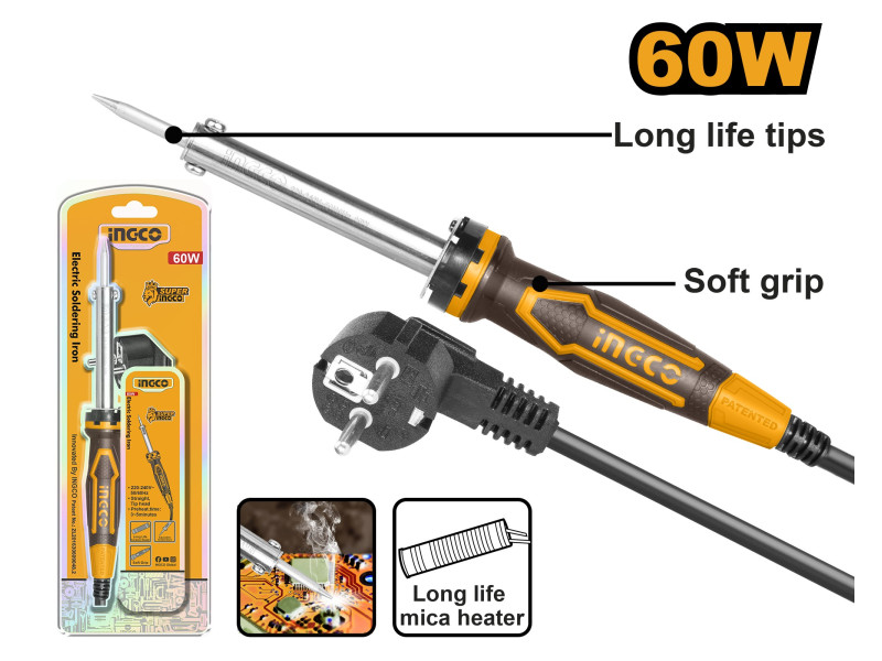 Elektronikai termék javítás: A forrasztópáka alkatrészek forrasztására, vezetékek összekötésére és áramkörök javítására szolgál. Különösen a kis elektronikai termékek javításánál segíthet a technikusoknak a precíz irányításban és működtetésben, valamint a nagy pontosságú hegesztés elérésében. Otthoni karbantartás: A forrasztópáka segíthet a megsérült vezetékek és elektromos berendezések összekötésében, valamint olyan létesítmények javításában, mint a vízvezetékek, hogy azok újra működőképessé váljanak. DIY kézműves termékek: A forrasztópáka nem csak hegesztésre korlátozódik, hanem kézműves termékek mintázatának és körvonalainak gravírozására is használható, például üveg, selyem és kerámia faragására, vagy ékszerek, modellek és játékok készítésére. Autójavítás: A forrasztópáka szintén alkalmas autójavításra. Használható járműkábelek összekötésére vagy hegesztésre. Azok számára alkalmas, akik szeretik saját maguk elvégezni a DIY autómodifikációkat.1. Hosszú élettartamú forrasztópáka-hegy, akár 20 000 forrasztási pontig tartó élettartam2. Mika fűtőmag, az élettartam nem kevesebb, mint 500 óra3. A fűtőcső 304-es rozsdamentes acélból készült, varrat nélküli acélcső4. Erős hőállóság és stabilitásFeszültség: 220 - 240 V ~ 50 / 60 HzFelvett teljesítmény: 60 WFelmelegedési.idő: 3 ~ 5 percHosszú élettartamú, cserélhető, egyenes, vékony pákahegy Szállítási terjedelem: 1 db pákahegy, 1 db munkadarb tartó, Bliszterben