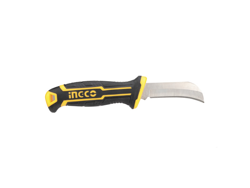 Csupaszítsa le a vezetékeketMagas minőségű rozsdamentes acélMéret: 200 mmHajlított pengeAnyaga: rozsdamentes acélMűanyag védőtokEgyedi markolatHomokszórt felület Szállítási terjedelem: 1 db kábelvágó kés, Bliszterben