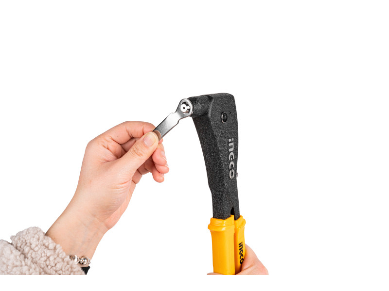 Fém asztalok és székek rögzítése, fém bútorok szegecselése, fém ajtózárak szegecselése1. Egy darab 10,5 hüvelykes alumínium szegecsfegyver 4 cserélhető szegecscsúccsal (2,4mm, 3,2mm, 4,0mm, 4,8mm)2. Háromszínű csúszásmentes fogantyú, ergonomikus és könnyen használható.3. A belső erősítő rugótervezés időt és erőfeszítést takarít meg, megkönnyítve a szegecsek kihúzását.Méret: 260 mm (10.5")Alumínium ötvözetAlkalmazható: popszegecs Átmérő: 2.4, 3.2, 4, 4.8 mm Szállítási terjedelem: Bliszterben