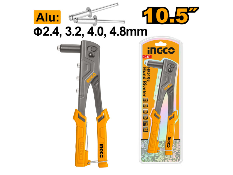 Fém asztalok és székek rögzítése, fém bútorok szegecselése, fém ajtózárak szegecselése"1. 4 cserélhető szegecselő fúvóka, amely képes 2,4 mm, 3,2 mm, 4 mm és 4,8 mm négy specifikációban szegecseket hajtani.2. Csúszásgátló fogantyú, ergonomikus és könnyen használható.3. Segéd-rugótervezés, biztonságos és munkát megkönnyítő.4. Fekete felület, nagy keménység, erős rozsdállósági képesség.5. Hexagonális kulccsal szállítva a könnyű szétszerelés érdekében"Méret: 260 mm (10.5")Alkalmazható: alumínium popszegecsÁtmérő: 2.4, 3.2, 4, 4.8 mm Szállítási terjedelem: 1 db kézi popszegecsfogó, Bliszterben