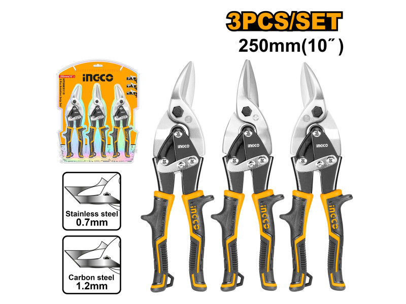 Alumínium lemezek, vaslemezek, rozsdamentes acéllemezek stb. vágására tervezveA pengéje króm-vanádium acélból készült, megmunkálva és nagyfrekvenciás kezeléssel ellátva. A penge oldala fogazott, hogy hatékonyan megakadályozza a levágott anyag elcsúszásátA TPR fogantyú kényelmes fogást biztosít Hossz: 250 mm (10")Max. vágás vastagság: Szénacél ? 1,2 mm, Rozsdamentes acél ? 0,7 mm Szállítási terjedelem: 3 db lemezvágó olló (bal, egyenes, jobb), bliszterben