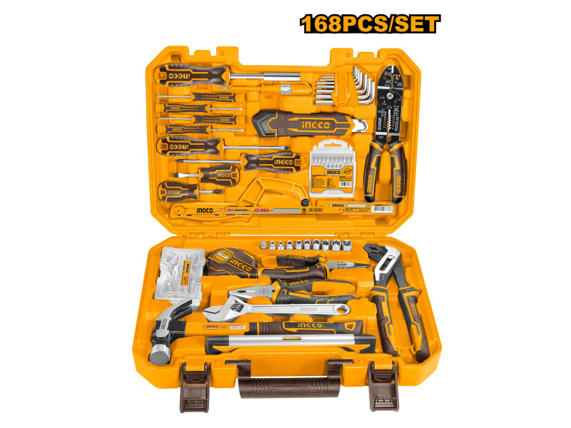 A készlet tartalma: 1 db ácskalapács, 1 db 7 kombinált fogó, 1 db 6 hosszúcsőrű fogó, 1 db 10 vízpumpa fogó, 1 db 8,5 vezetékcsupaszító, 1 db SL5.5x100 csavarhúzó, 1 db PH1x100 csavarhúzó, 2 db rövid csavarhúzó: PH238, SL6.538, 4 db precíziós csavarhúzó (SL2.050 mm, SL2.550 mm, PH00050 mm, PH0050 mm), 1 db fázisceruza (tesztfeszültség: 100-500 V AC), 1 db 8 állítható villáskulcs, 1 db 3 méteres acél mérőszalag, 1 db mini fémfűrész keret, 8 db imbuszkulcs: 1.5/2/2.5/3/4/5/5.5/6 mm, 1 db 1/4 100 mm mágneses szár, 40 db csavarhúzó bit: T5-T6-T7-T8-T9-T10-T15-T20-T25-T30-PH1-PH2-PH2-PH3-PH4-PZ1-PZ2-PZ2-PZ3-PZ4-SL3-SL3-SL4-SL4-SL5-SL5.5-SL6-SL6.5-SL7-SL7-H2-H3-H3-H4-H4-H5-H5-H6-H7-H7, 1 db 18 mm letörhető pengés kés, 10 db kés pengék, 9 db 1/4 hatszögletű dugókulcs: 4 mm, 5 mm, 6 mm, 7 mm, 8 mm, 9 mm, 10 mm, 11 mm, 12 mm, 1 db 4-6 mm (25 mm) dugókulcs adapter, 1 db 225 mm-es vízmérték, 40 db csavar (22 db ST3.5, 10 db ST4, 8 db ST5), 40 db műanyag tipli (22 db 5 mm, 10 db 6 mm, 8 db 8 mm), kofferben
