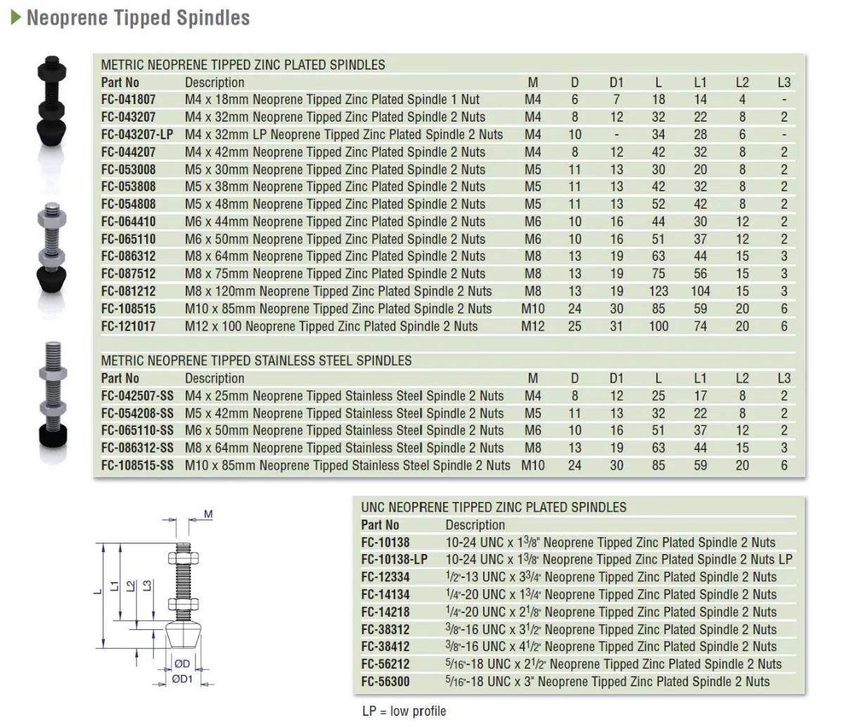 GoodHand FC-053808 M5 x 38mm Neoprene Tipped Spindle 2 Nuts