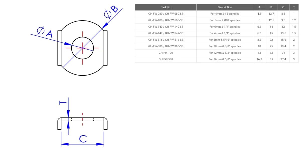 GoodHand FW-120 Pair Of Zinc Plated Flanged Washer For 12mm & 1/2" Spindles
