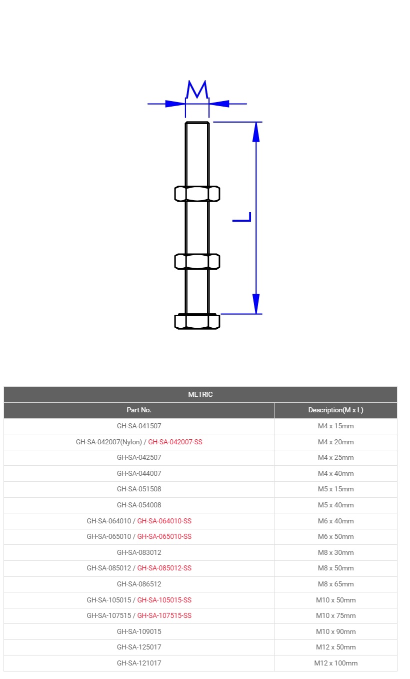 GoodHand SA-086512 M8 x 65mm Spindle 2 Nuts Pitch 1.25