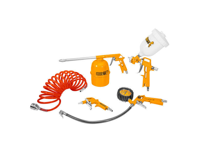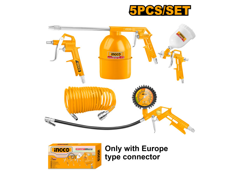 Alkalmas különböző autók vagy kézműves termékek tisztítására és karbantartására1. Öt-az-egyben készlet, magas költséghatékonyság, még költséghatékonyabb2. Porfúvó pisztoly, tisztító pisztoly, gumiabroncs-nyomás mérő pisztoly, festékszóró pisztoly: fogantyú fejlesztése, szép, kényelmes, fém alumínium pisztolytest, tartósabb.3. Tisztító pisztoly: por eltávolítása és tisztítása kettős célú, hosszabbított permetező rúd, amely alkalmas különböző munkakörülményekre4. Festékszóró pisztoly: finom atomizáció5. Gumiabroncs-nyomás mérő pisztoly: nagy pontosságú számlap, felfújás, leeresztés és gumiabroncs-nyomás érzékelés három funkcióval.EURO szabvány csatlakozókTömlőhossz: 4 mTömlőátmérő: 8 mmFúvóka hossz: 16 mmÜzemi nyomás: 3 - 4 barFesték kapacitás: 600 cm3Szórástartomány: 180 - 250 mmÜzemi nyomás: 4 barOlajszóró kapacitás: 750 cm3Max. nyomás: 12 bar Szállítási terjedelem: Flexibilis tömlő, Lefúvató pisztoly, Festékszóró pisztoly, Olajszóró pisztoly, Kerékfuvató pisztoly, Kartondobozban