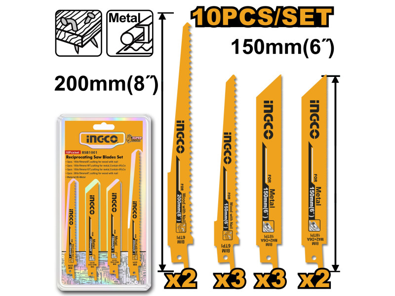 Ezek a szövegek pontosan elmagyarázzák, mire kell használni a szerszámainkat.Fa szögekkel, fémvágásBimetál anyag, M42 fogak. A fűrészlap nagyobb szívóssággal rendelkezik, és hosszú távú vágás során nem deformálódik könnyen. Az M42 fogak nagyobb keménységgel és hosszabb élettartammal rendelkeznek.Szöges fára: 3 db 150 x 19 x 1.2 mm x 6T, 2 db 200 x 19 x 1.2 mm x 6TFémre: 2 db 150 x 19 x 0.92 mm x 18T, 3 db 150 x 19 x 0.92 mm x 10TAnyaga: Bimetál Szállítási terjedelem: 5 db szöges fára, 5 db fémre, Bliszterben