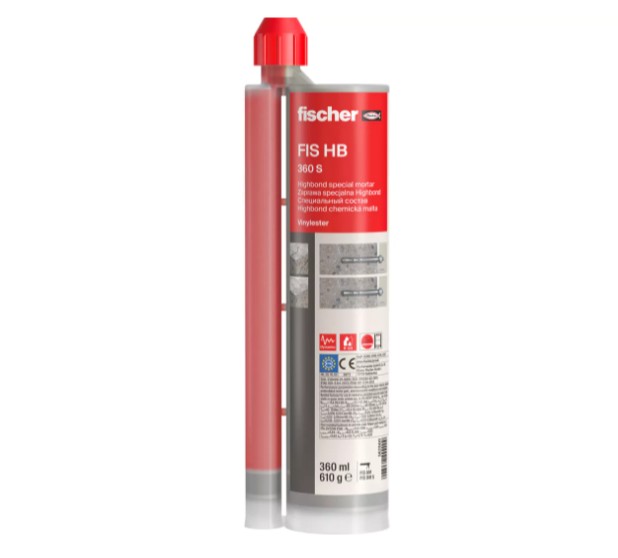 A fischer FIS HB Highbond speciális ragasztóanyag a fischer Highbond FHB II rendszer elemeként alkalmazható repedéses és repedésmentes betonba történő rögzítésre a maximális terhelhetőség eléréséhez. A repedéses betonra vonatkozó Option 1. európai műszaki értékelés és a svájci sokk terhelésre vonatkozó jóváhagyás extra biztonságot nyújt. A korlátok, gépek és acélszerkezetek bel- és kültéren biztonságosan rögzíthetők a fischer FHB II-vel. A speciális ragasztóanyag különféle acélminőségű FHB II-A S, FHB II-A L dübelekkel alkalmazható.