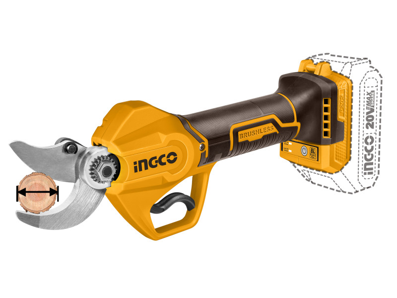 INGCO Akkus metszőolló 25 mm szénkefe nélküli 20 V (1 x 2,0 Ah akku + töltő)